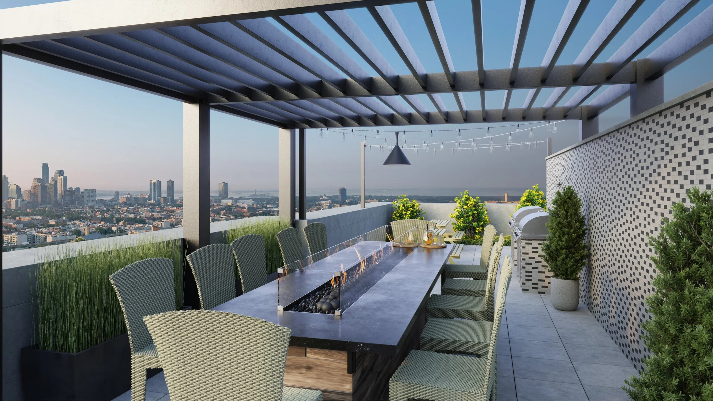 Lounge in style on our sunbeds, take a dip in our pool, share stories at the firepits, catch the big game on the outdoor screens, share a meal with friends by the grill, or spend time with your pup at the dog run. Our rooftop is the perfect oasis for those looking to relax and unwind.